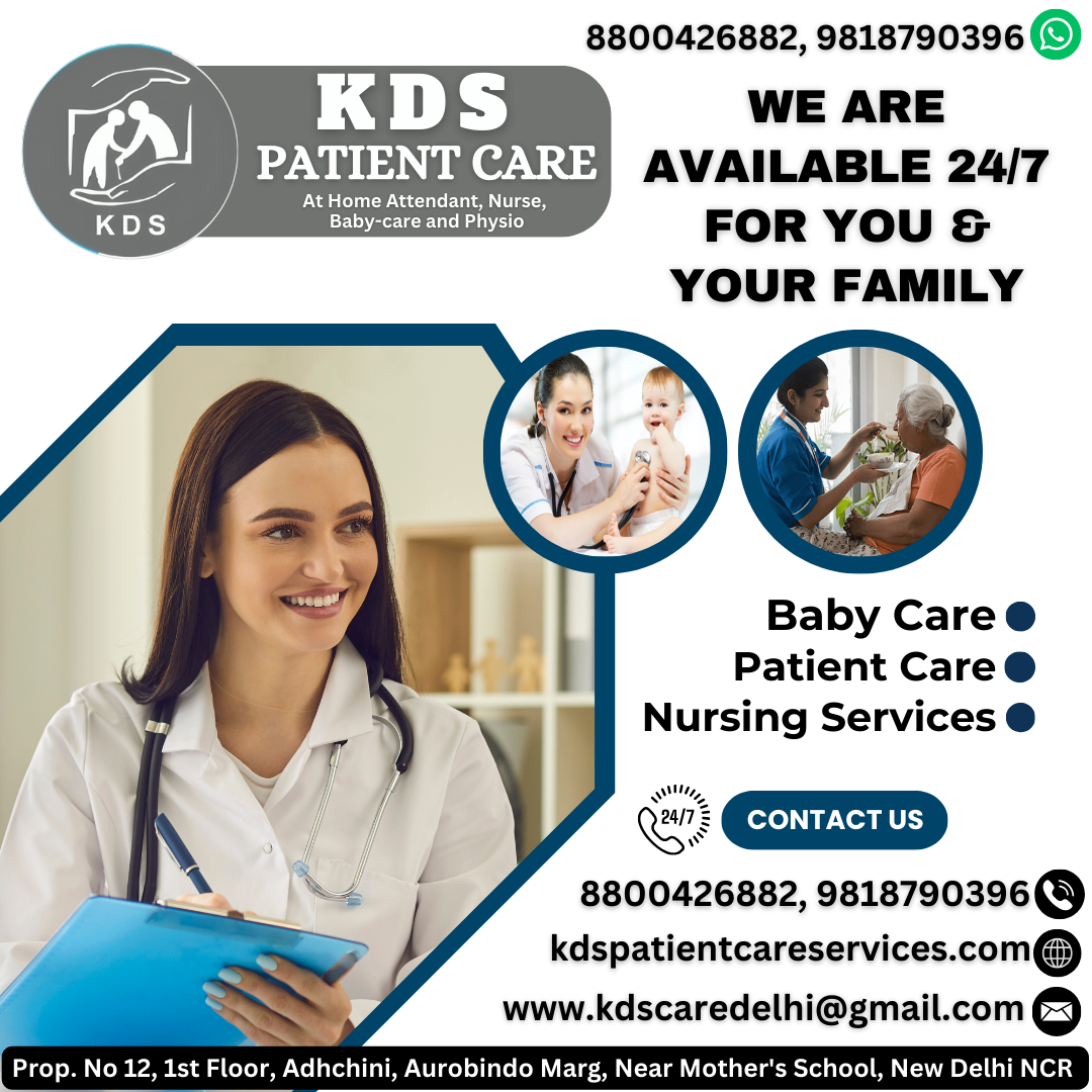 "KDS provides caring, compassionate and trained attendants at your home to care for your loved one, elderly and patients. Servicing the Delhi NCR region"